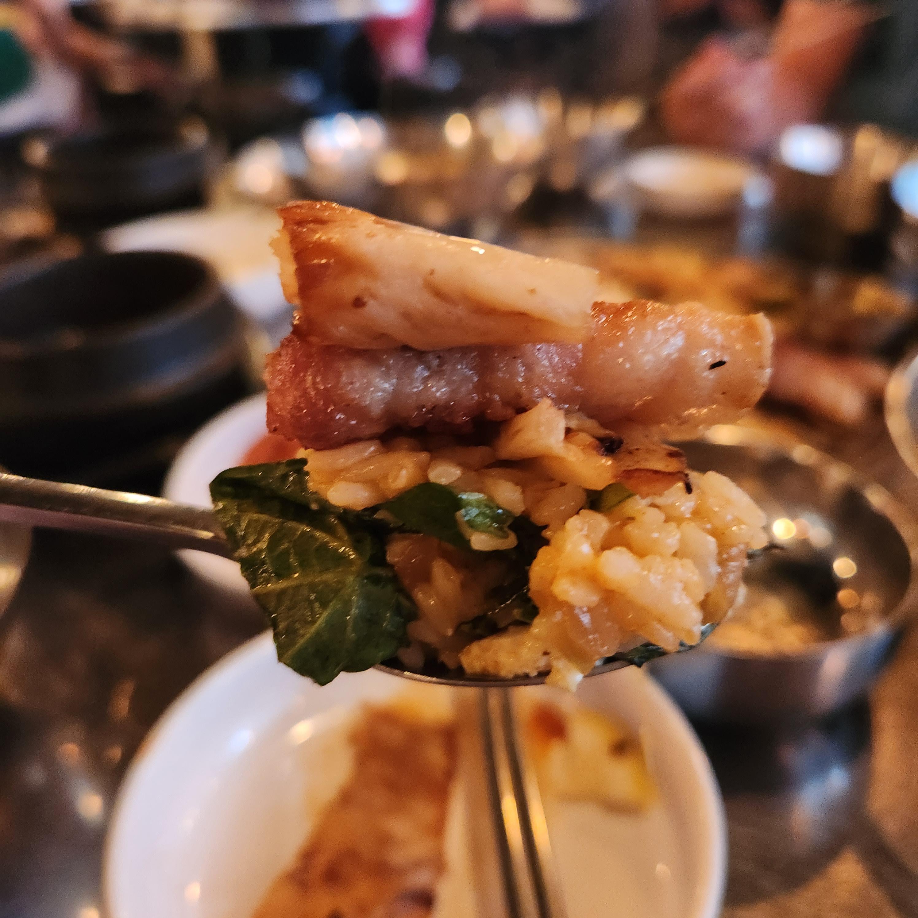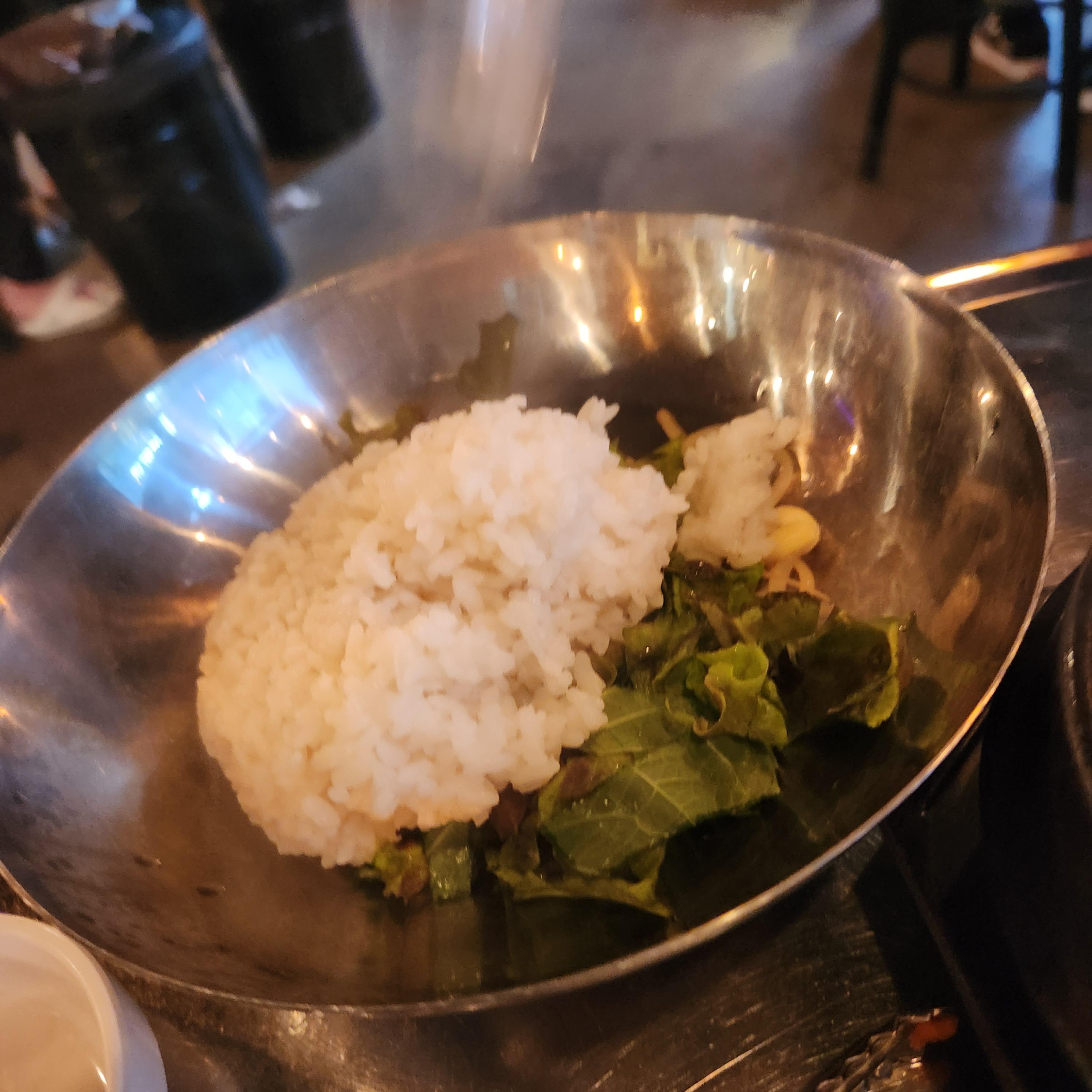 비빔밥만 먹어도 맛있지만 삼겹살 묵은지와 함께 먹거나 남은 고기와 양배추 쌈으로 먹으면 더 맛있다.