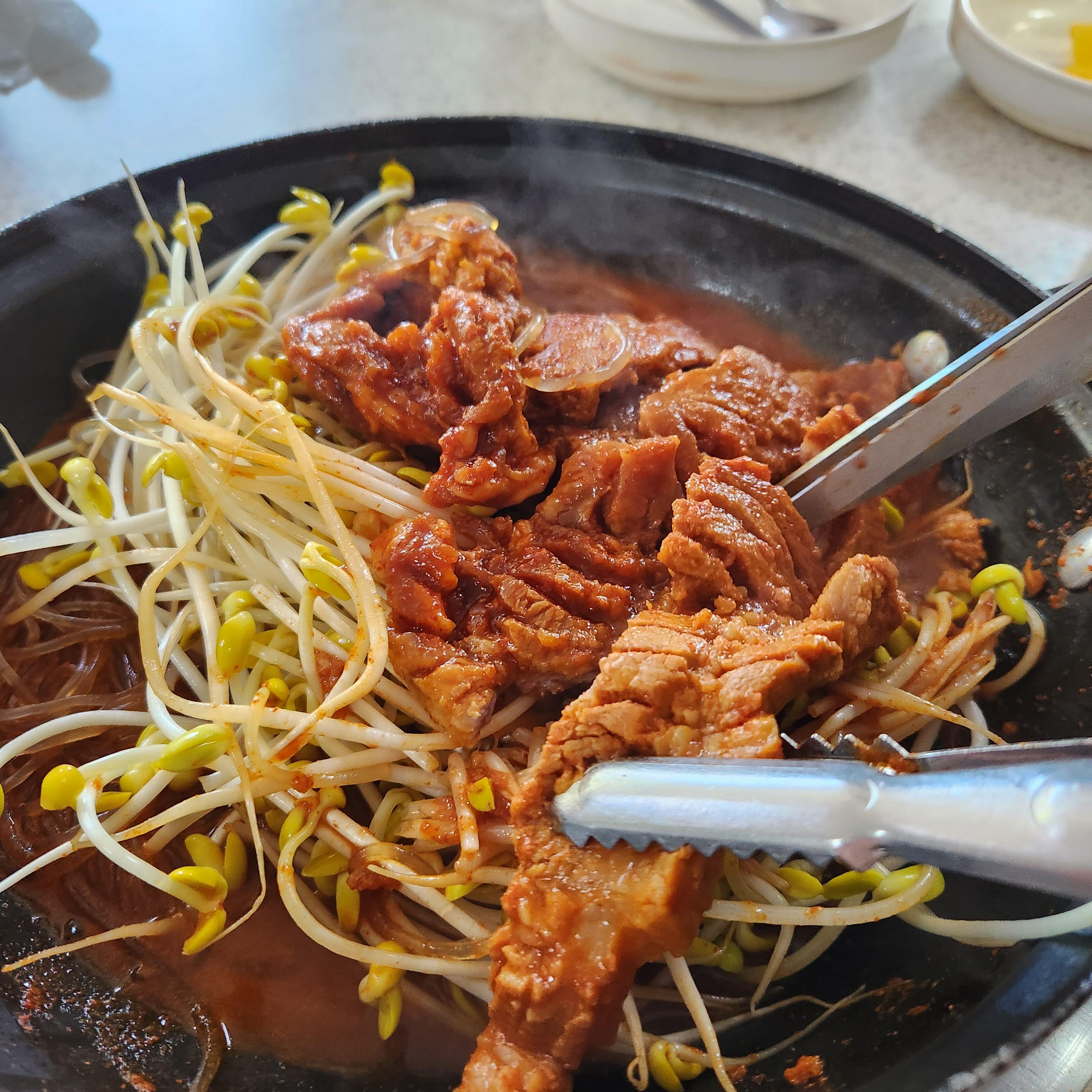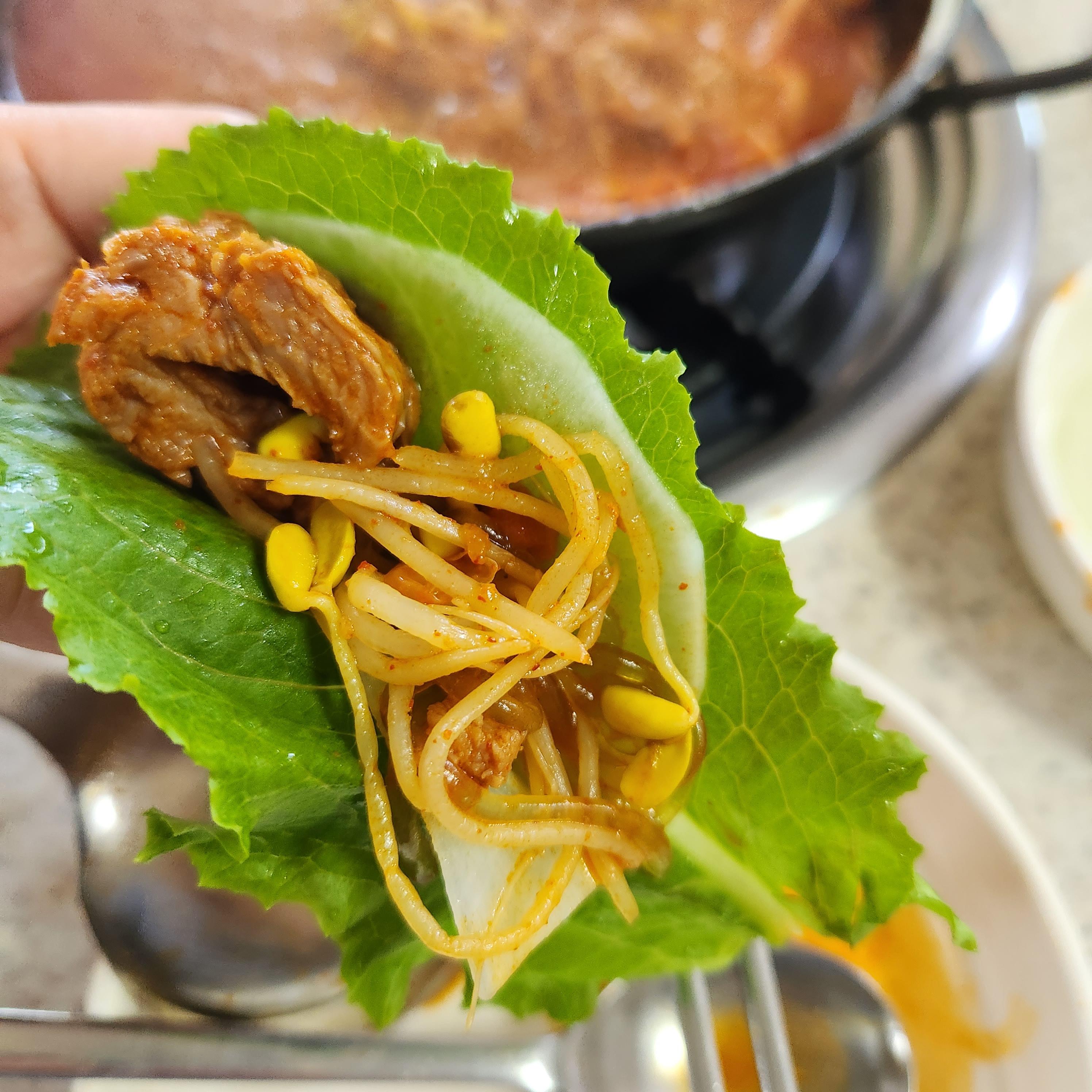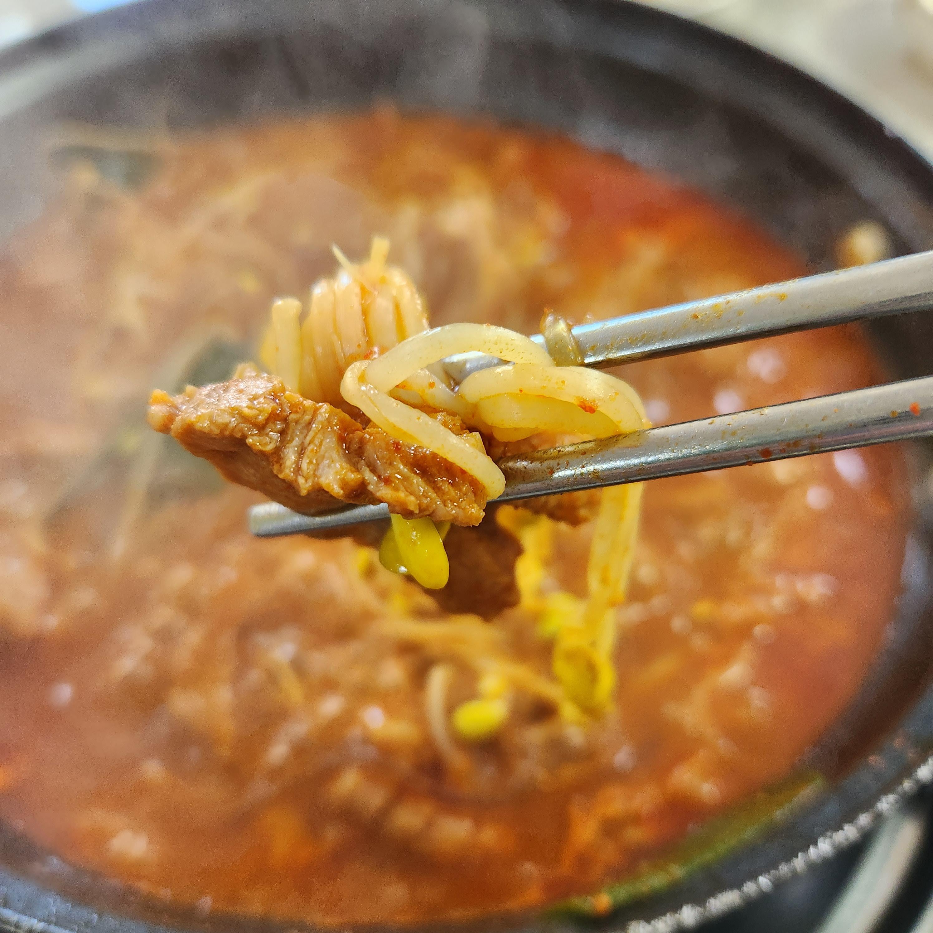 보드라운 고기와 아삭한 콩나물이 궁합이 좋다.
