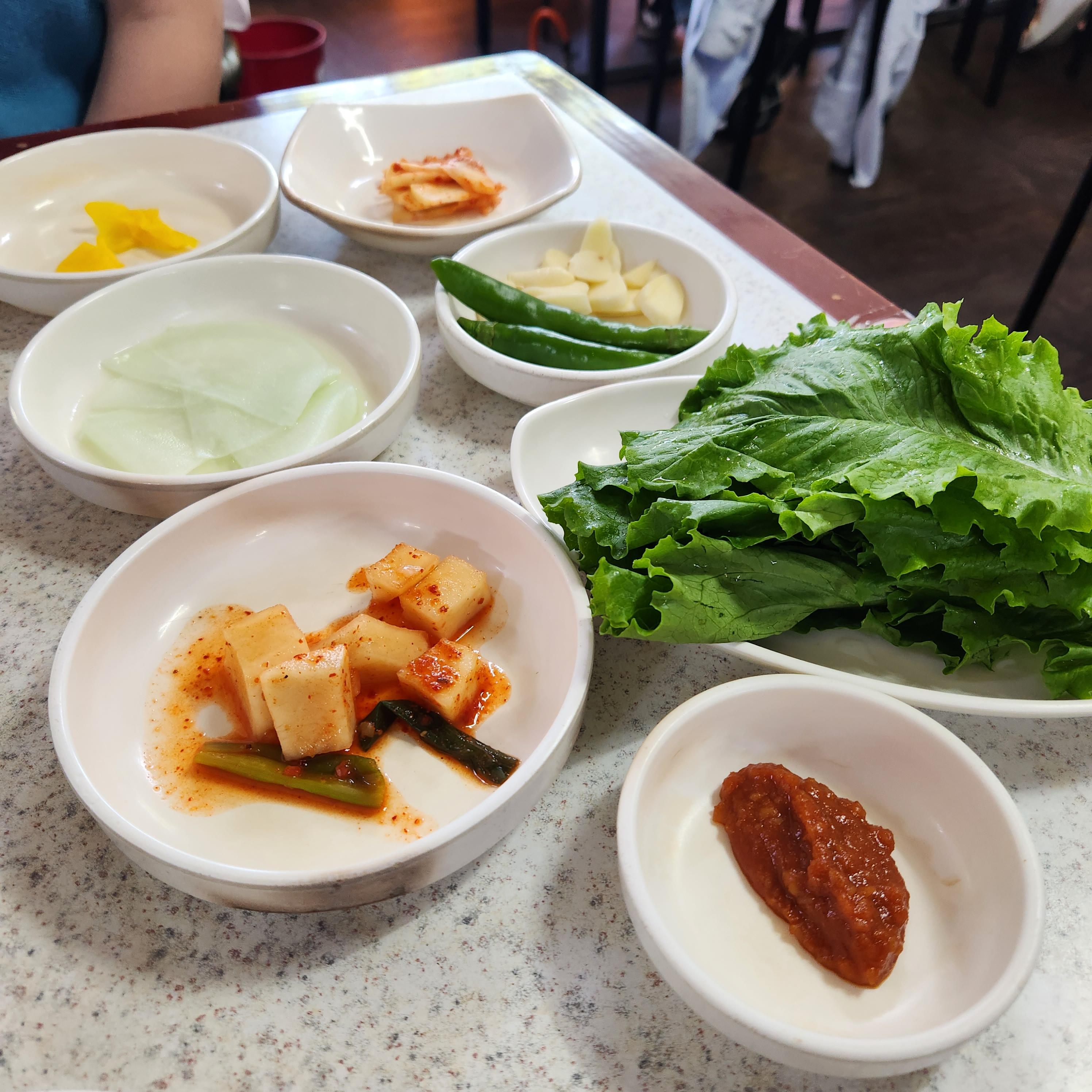 메뉴를 주문하면 간단한 밑반찬과 상추가 나온다.