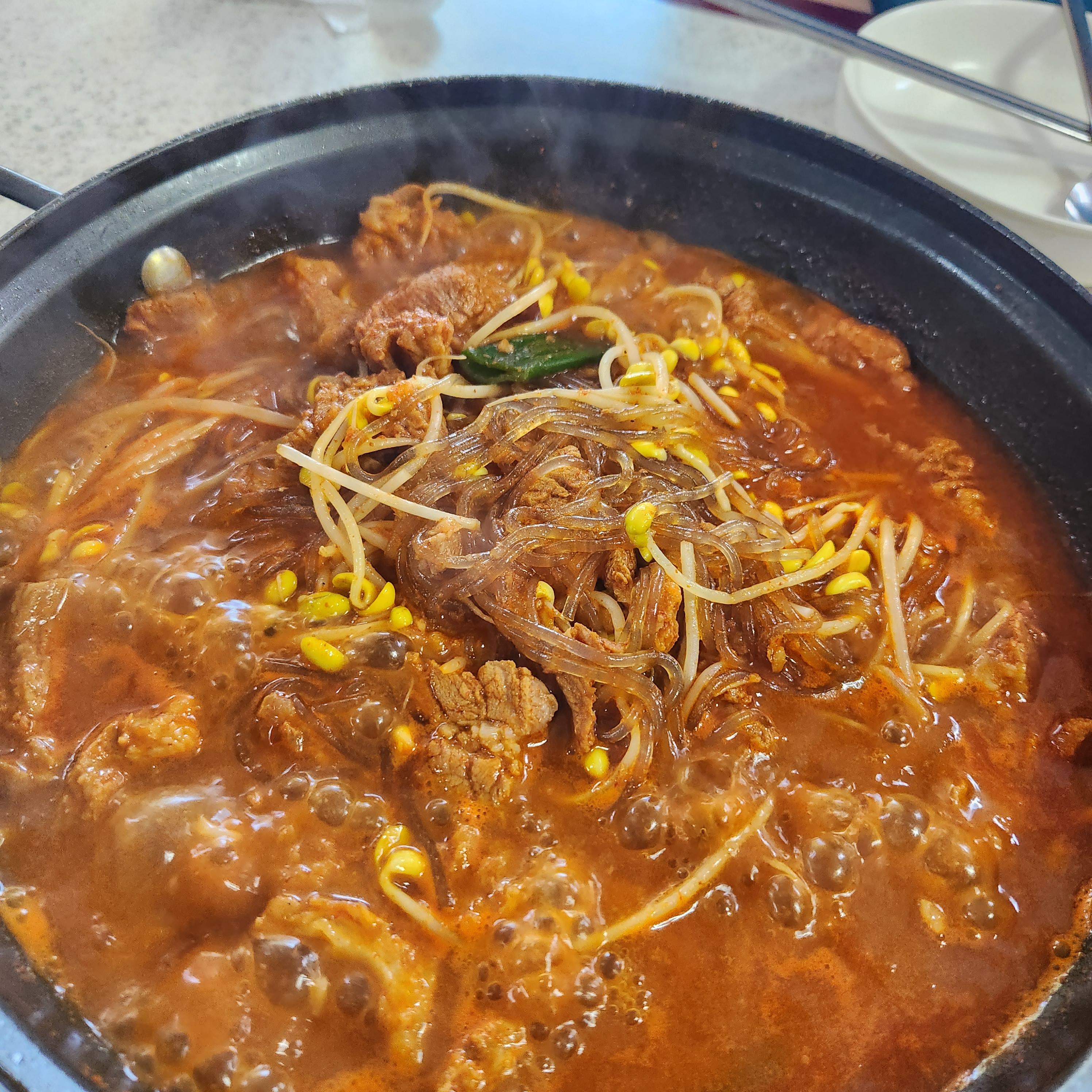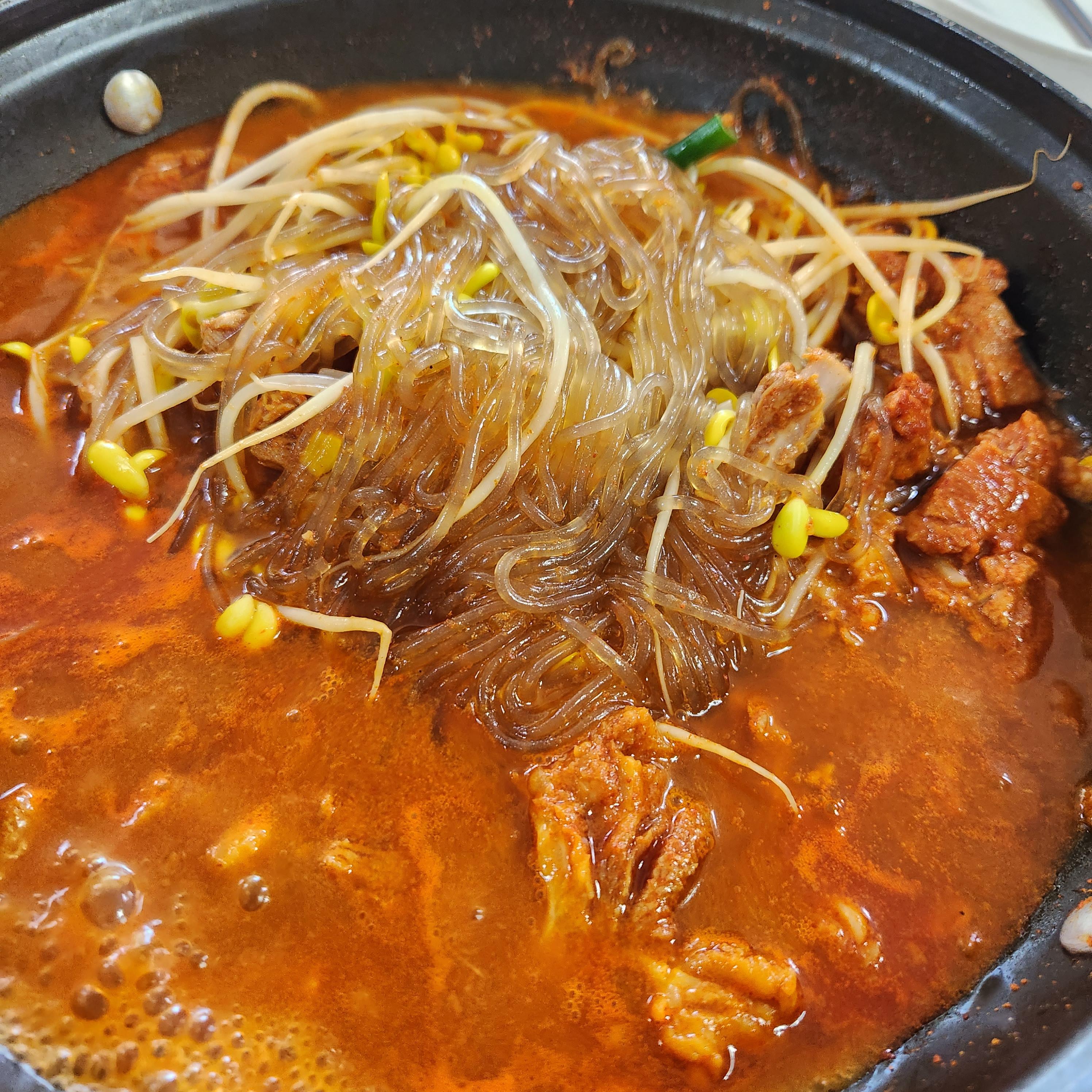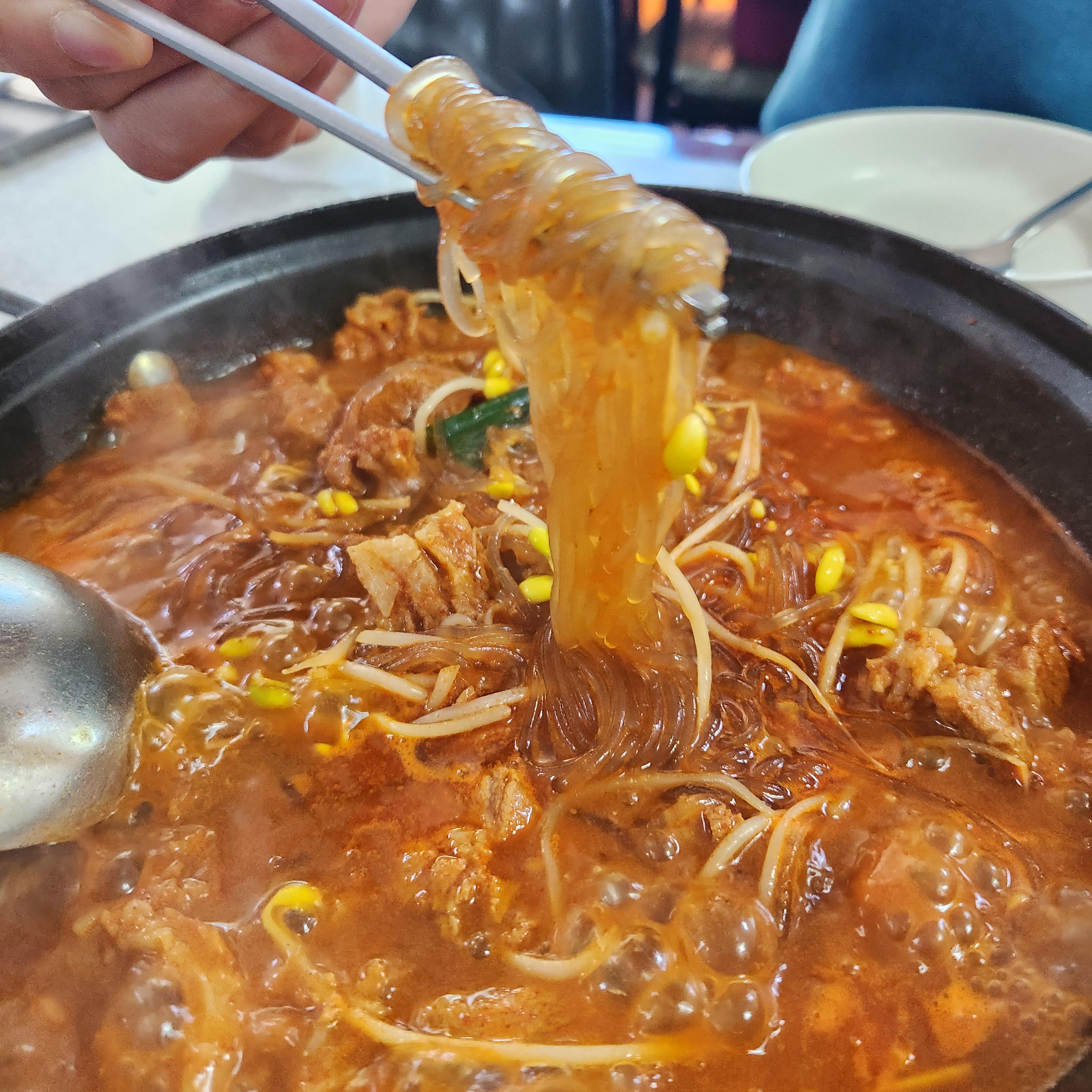 국물이 끓으며 당면과 콩나물이 익어간다.
