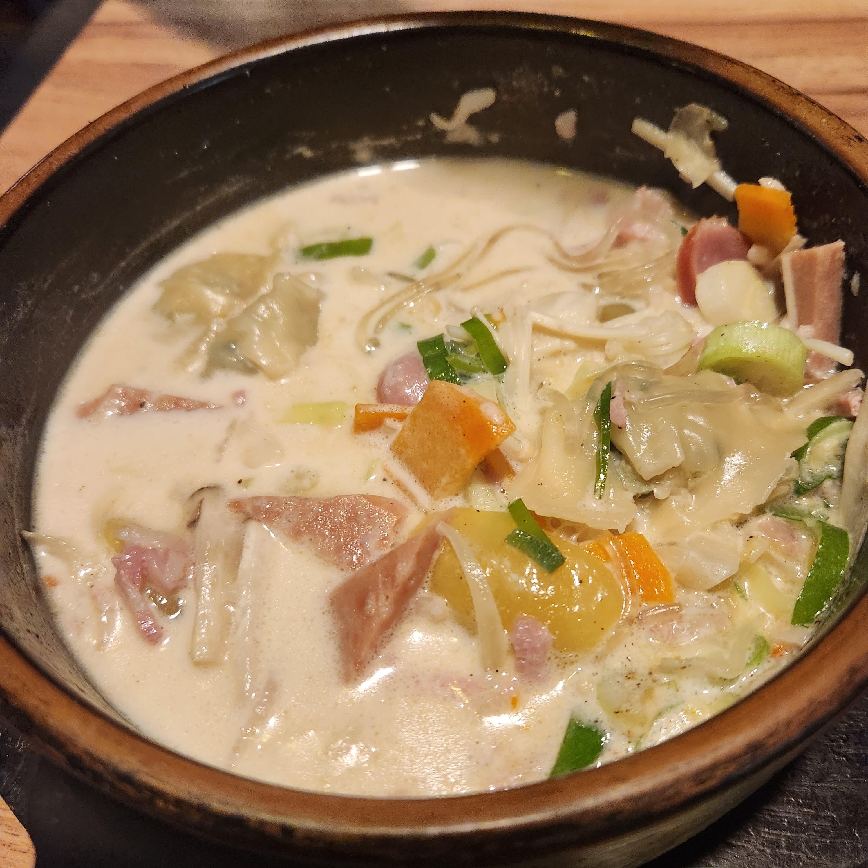 사진에는 맛없고 이상하게 보이지만 크림부대찌개도 묘하게 맛있다.