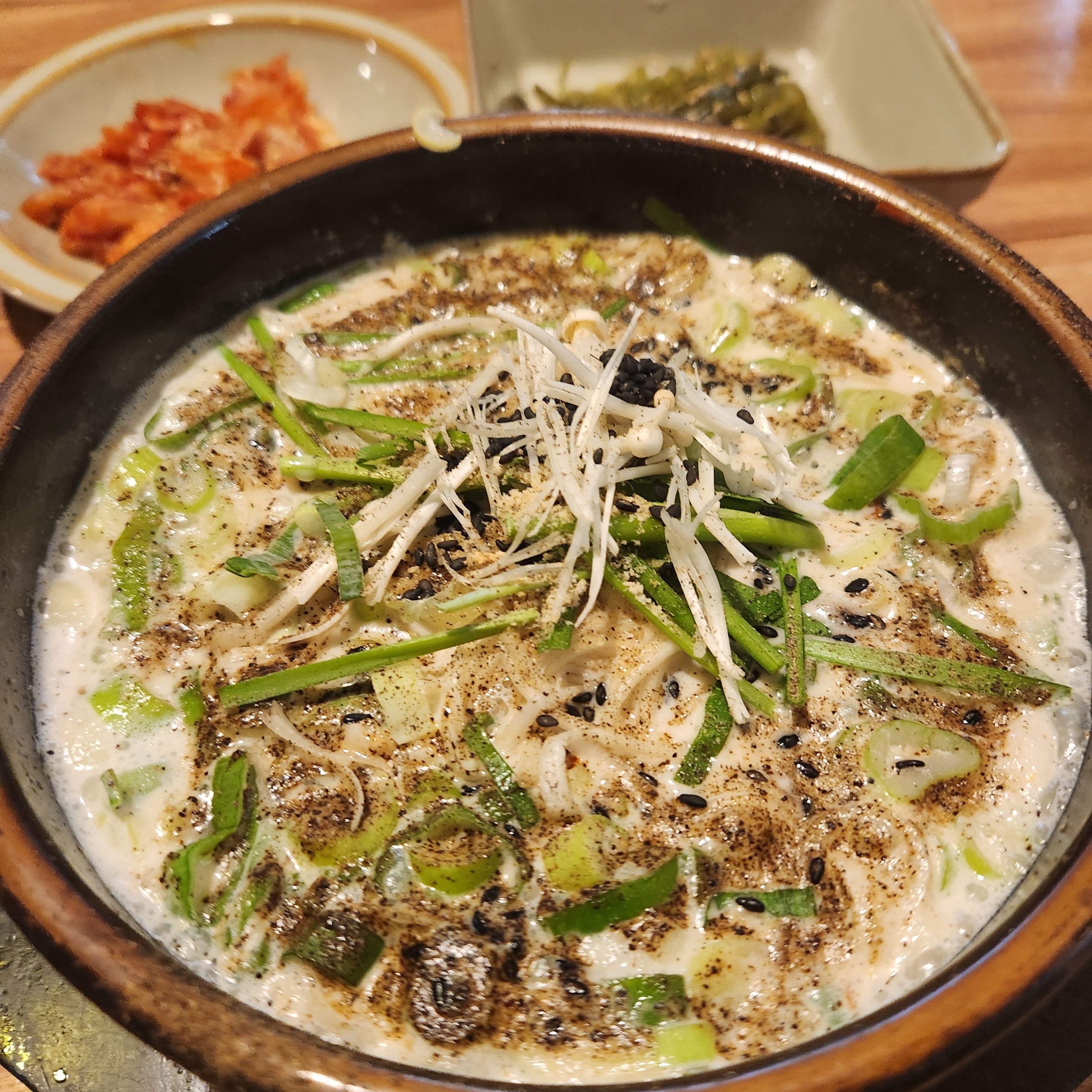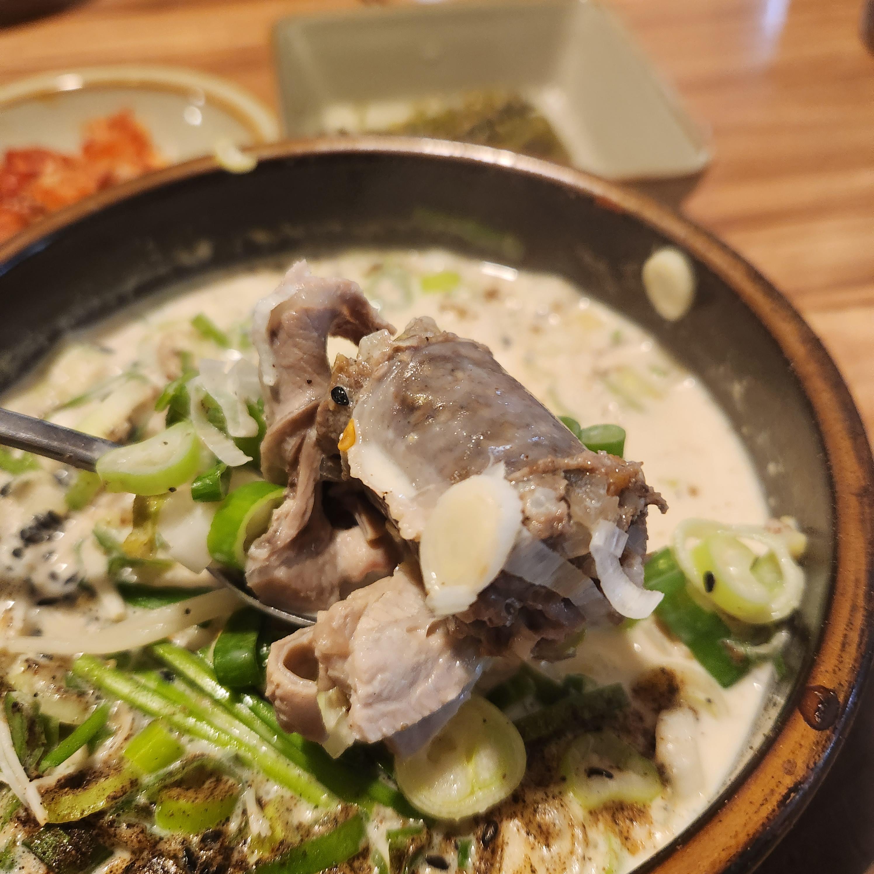 크림 순댓국과 같은 국물을 베이스에 후추의 알싸함이 아닌 다른 얼큰한 맛 덕분에 매콤하다.