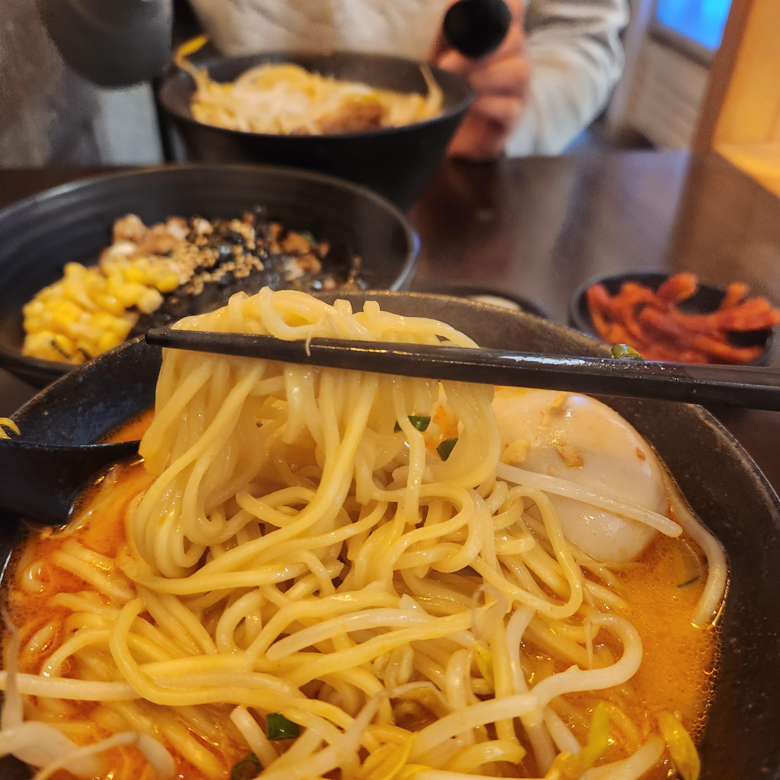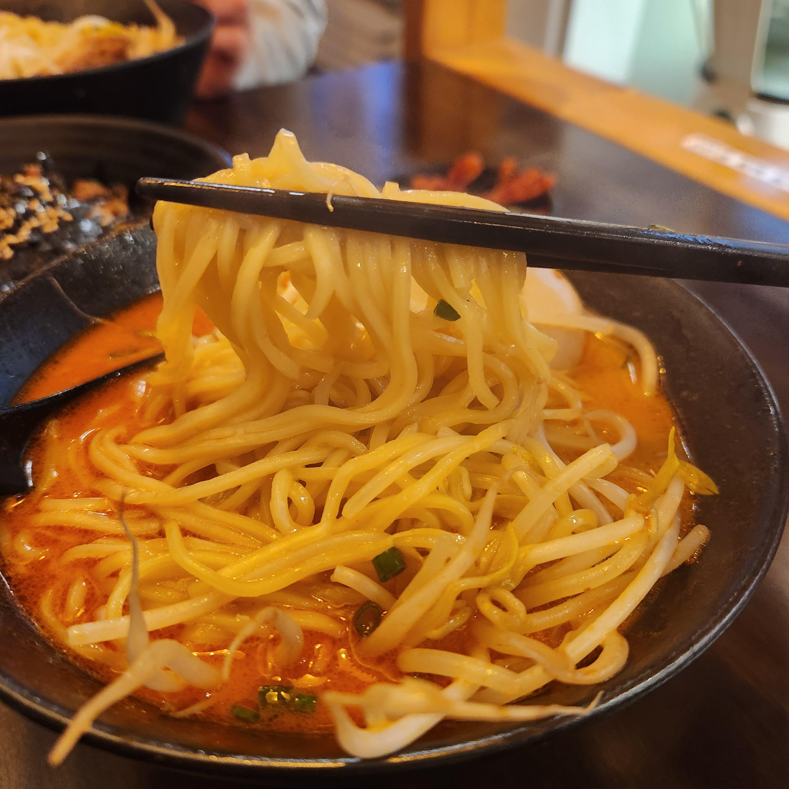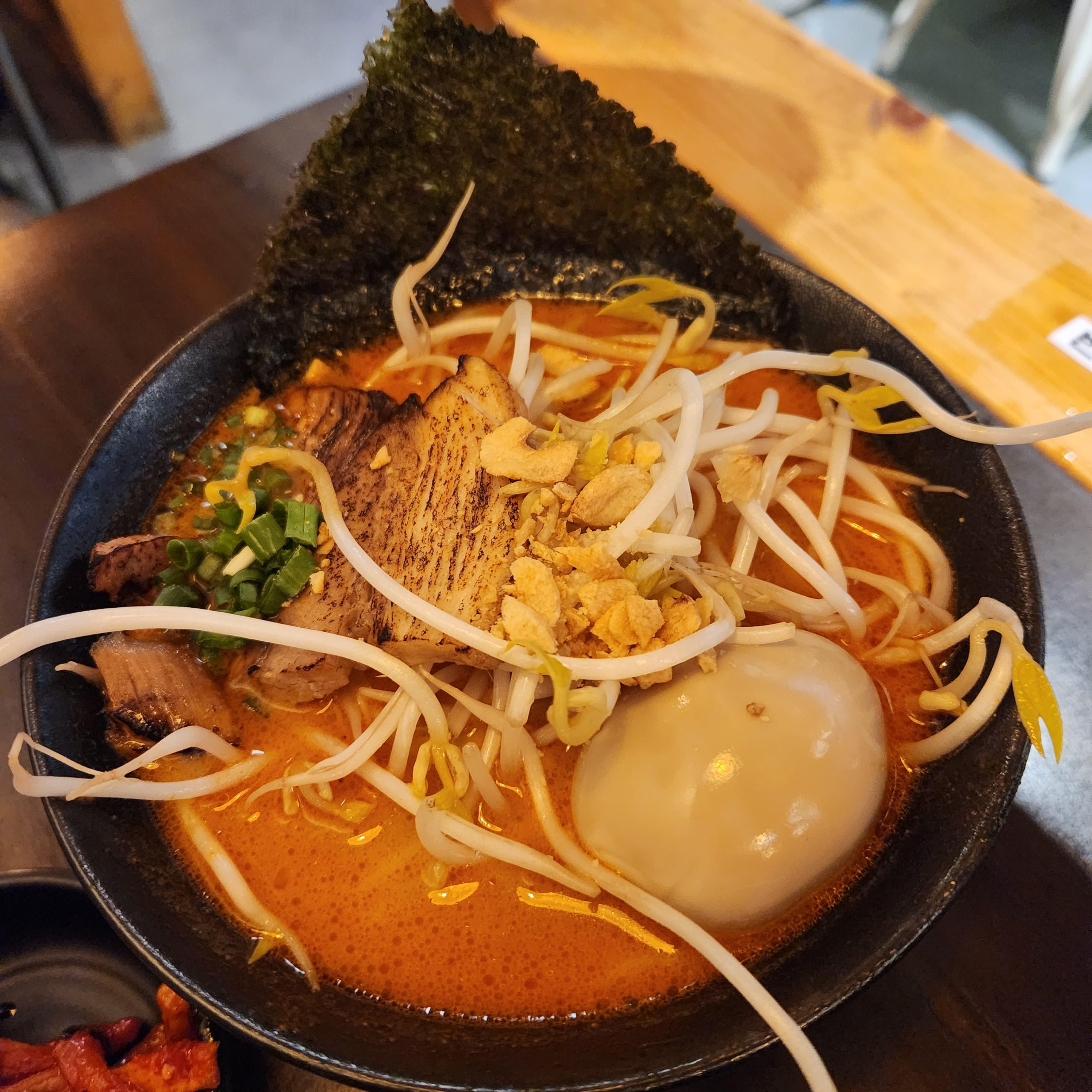 돈코츠카라미소라멘이다. 된장라멘으로 소유멘과 같은 구성물이 올라갔지만 소유멘 국물보다 더 칼칼하고 진한 맛이다.