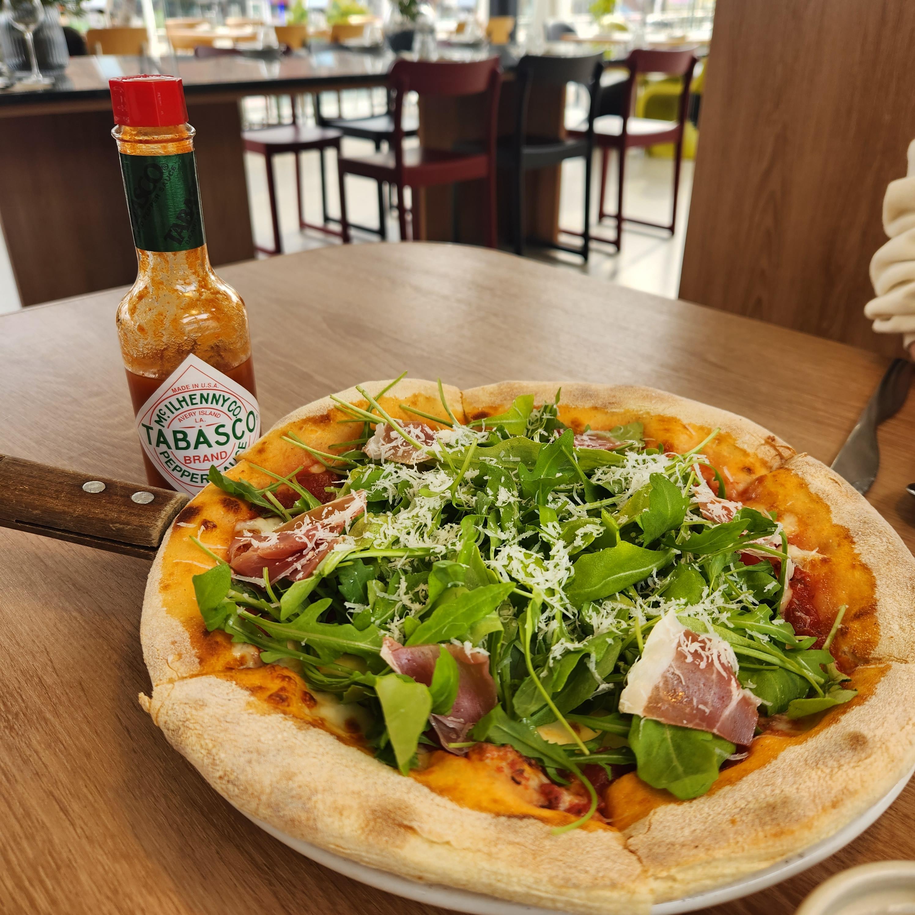 루꼴라가 가득 올라간 프로슈토 피자다.