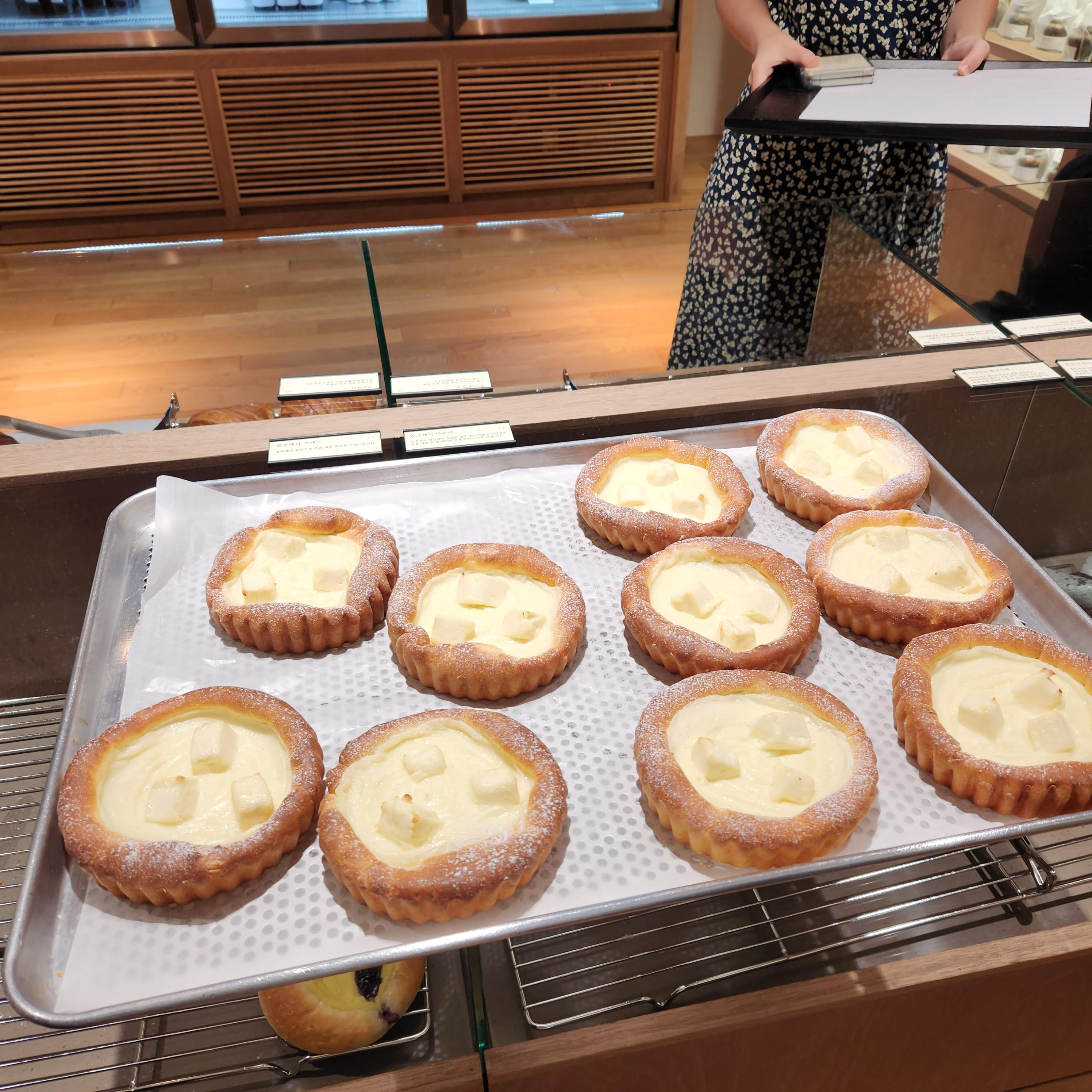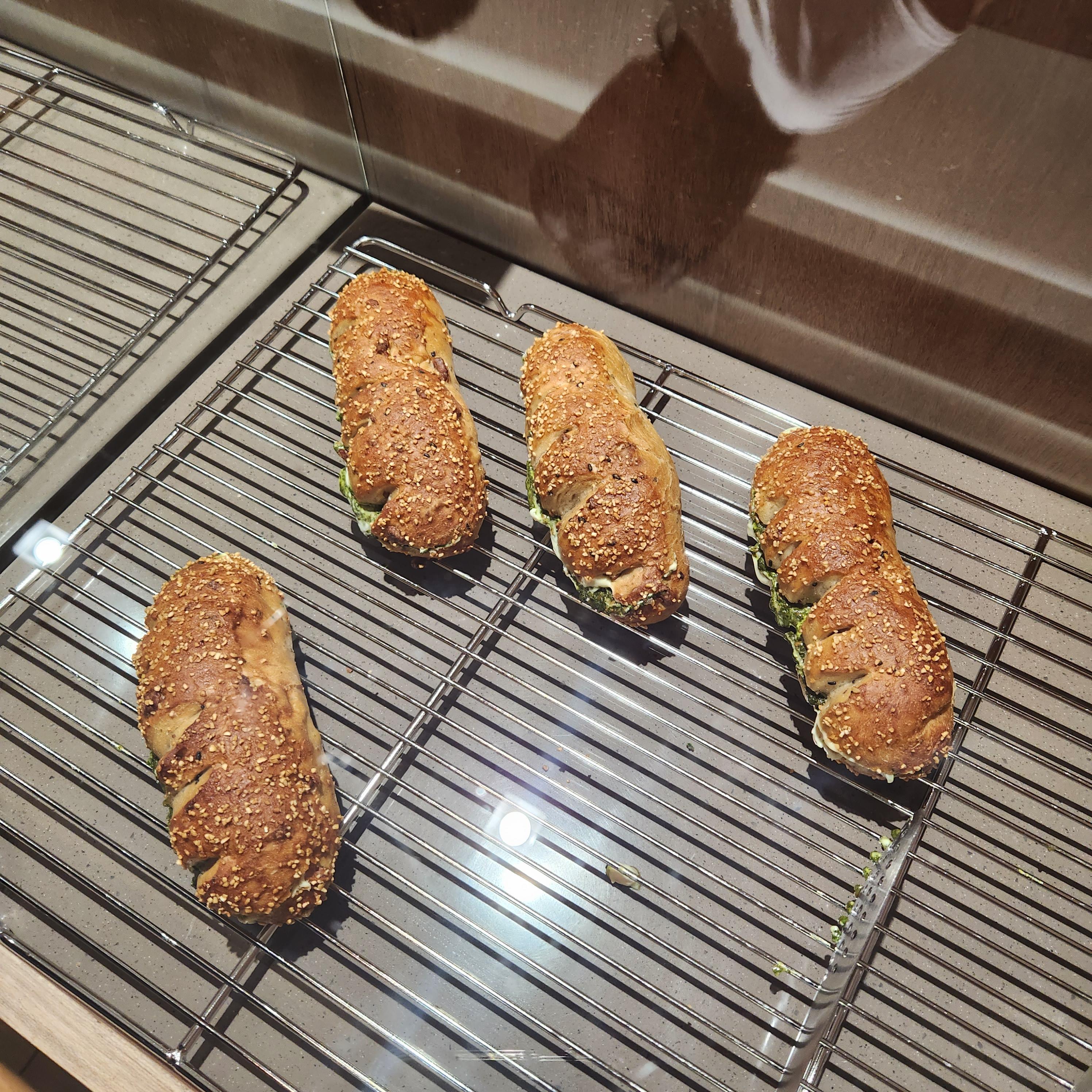 선택지가 많아 고민될 때 등장한 갓 구워 진열 준비 중인 치즈 브레드를 만났다.