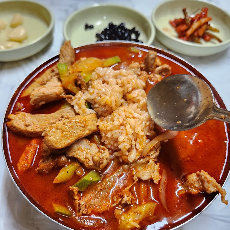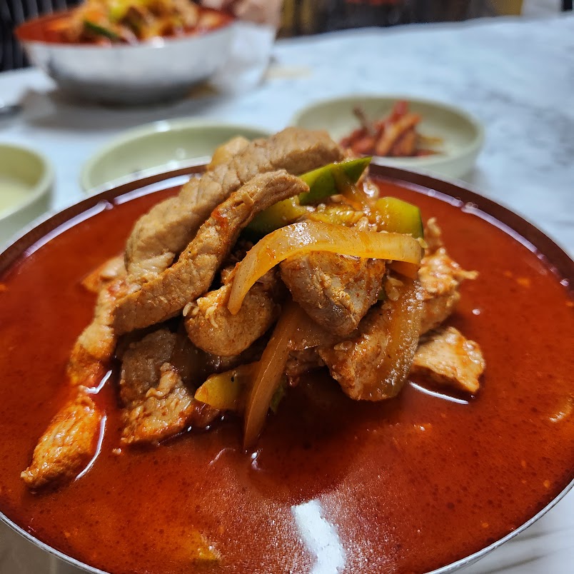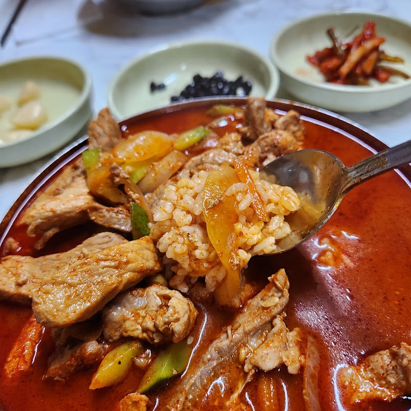 그리고 인스타에 유명한 명화식육식당의 애호박국밥.