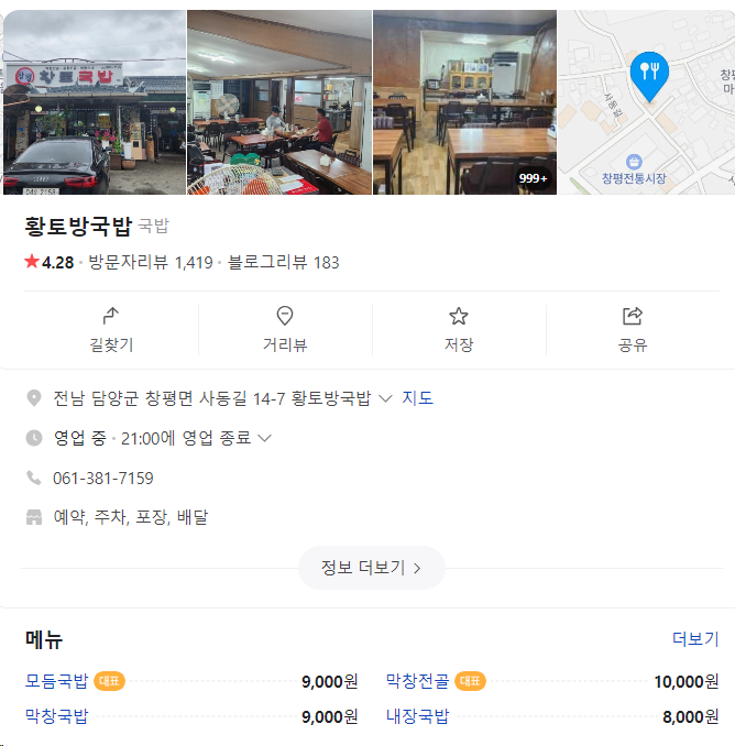 바로 앞 식당 주차장과 1분 거리에 창평전통시장주차장