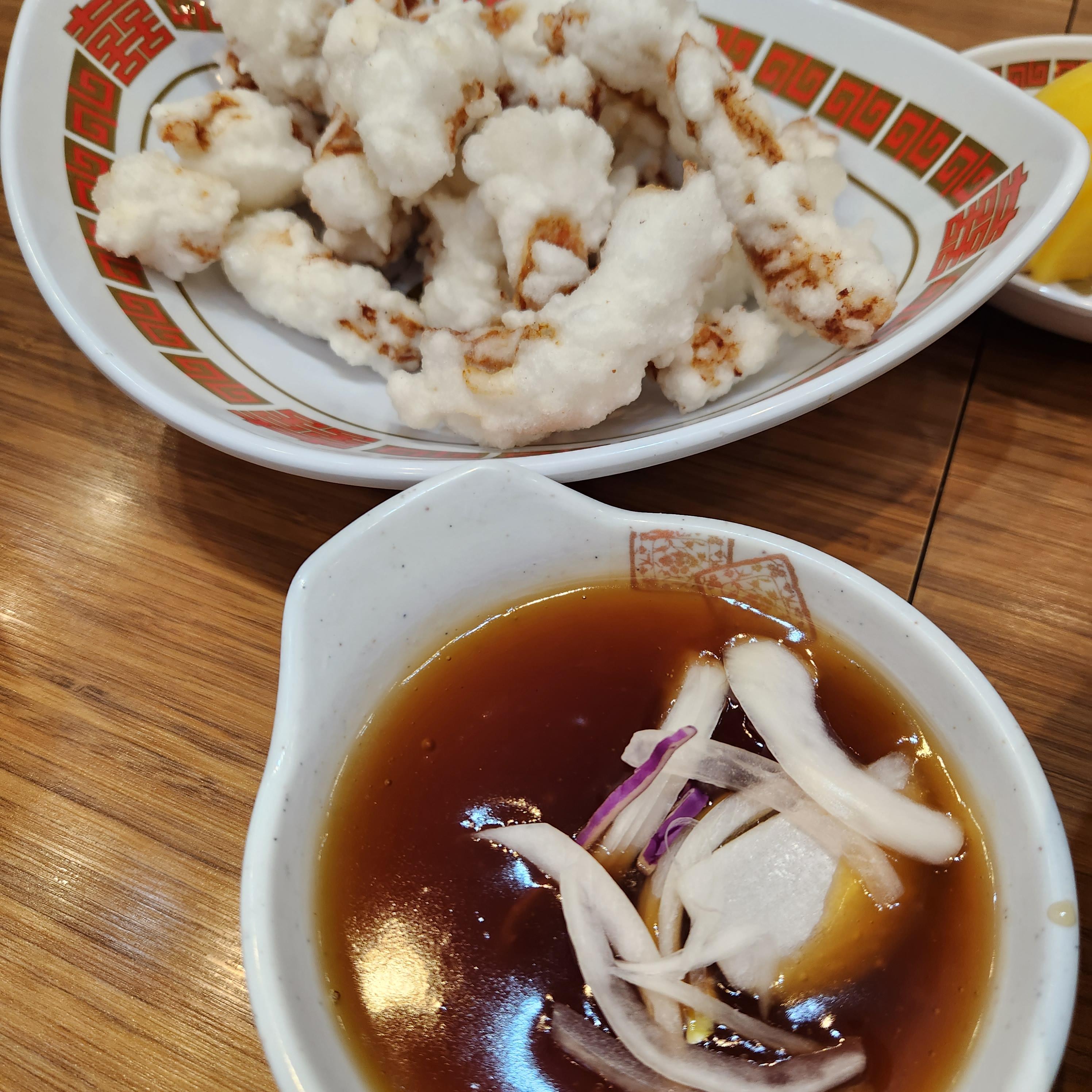 찹쌀 탕수육이어서 튀김이 바삭하고 쫄깃하다.
