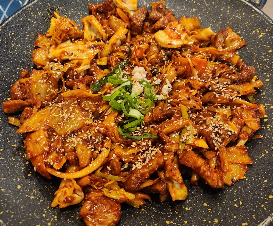 줄 서는 식당에서 볼 때는 돼지김치구이메뉴 국물이 자작했는데,, 국물 없이 그냥 볶음 같았다.