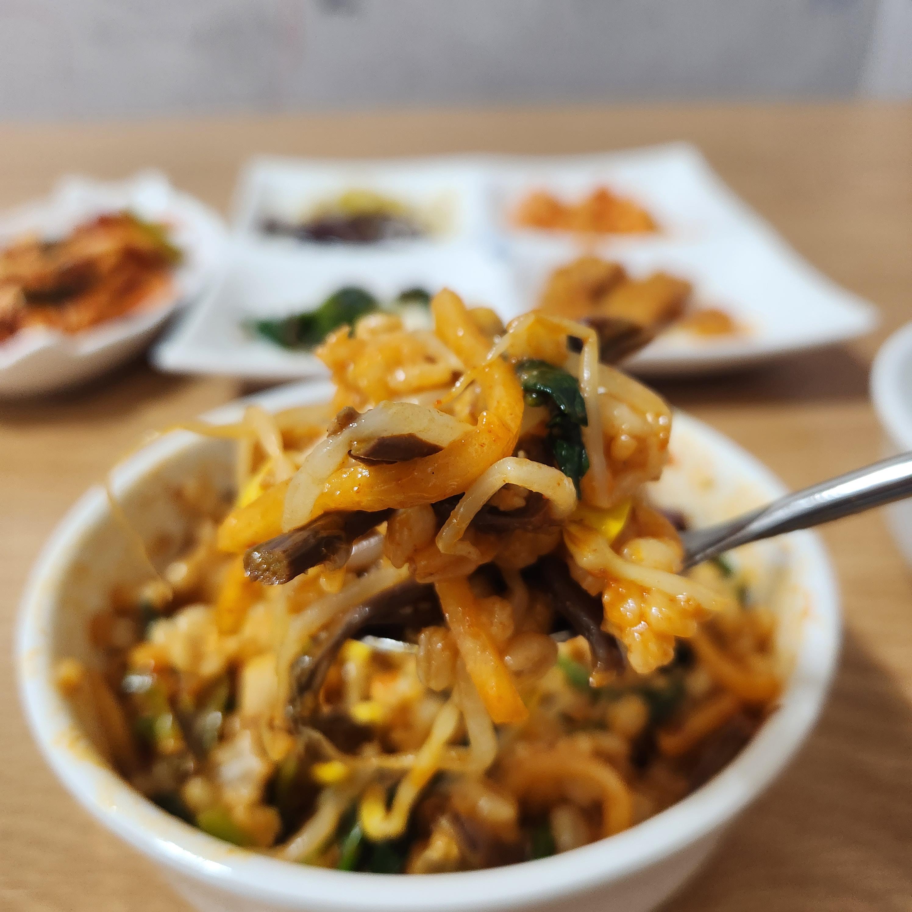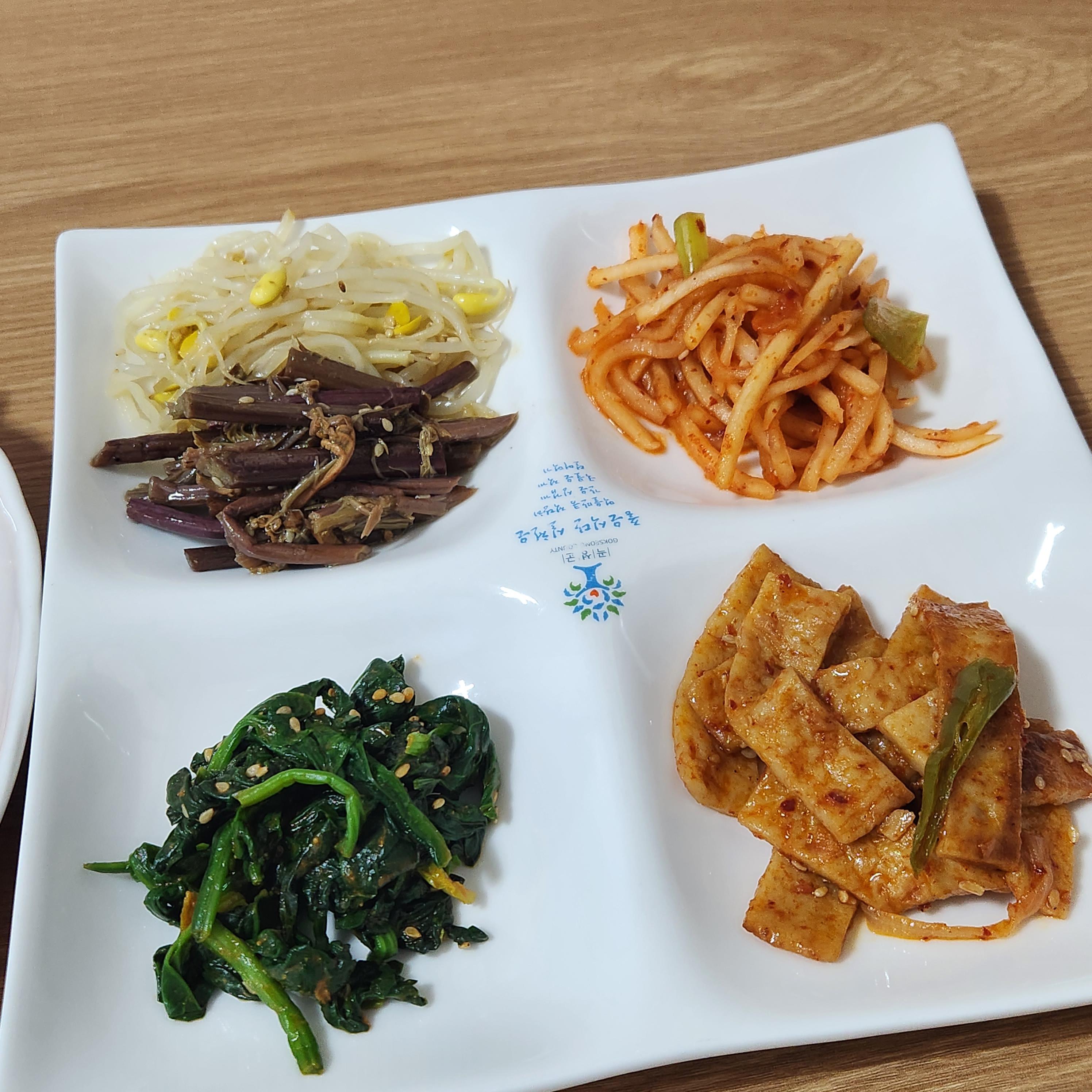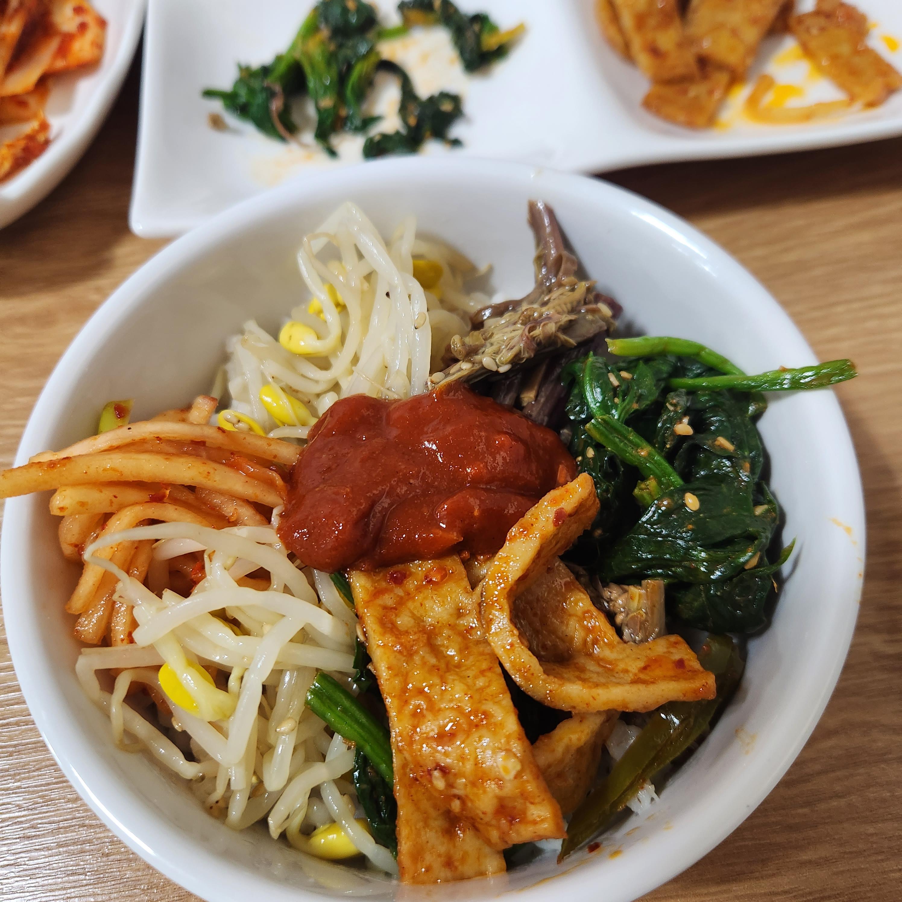 나물들 간이 적당하고 양념장도 간이 적당해서 짜지 않고 맛있다.