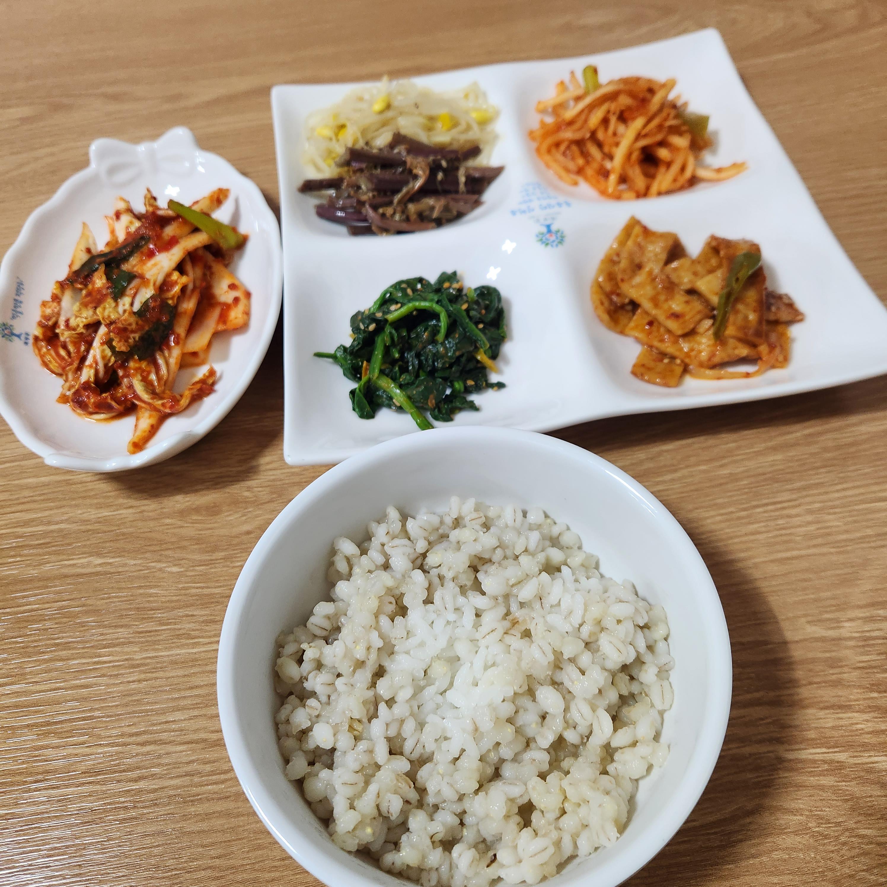 보리밥도 주신다. 밑반찬으로 나물이 다양했던 이유가 있었다.