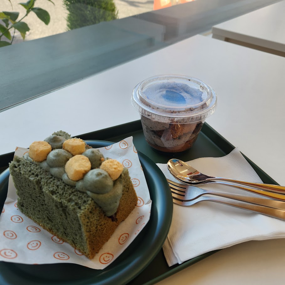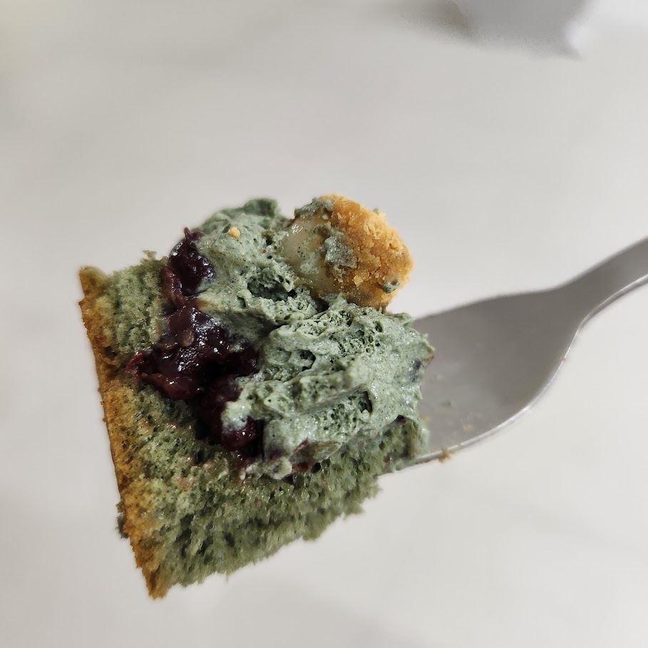 쑥 쉬폰을 속에 팥 앙금이 숨어 있었다. 고급스러운 쑥 크림과 달콤한 팥 앙금의 조화가 좋다.