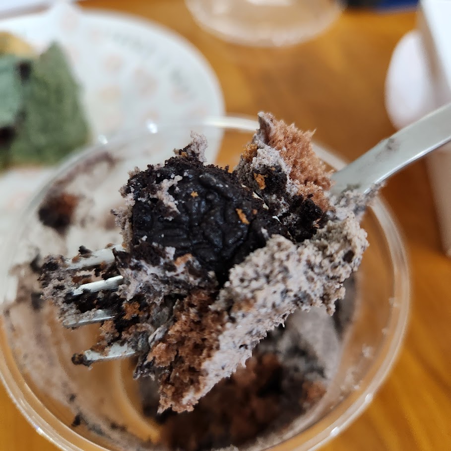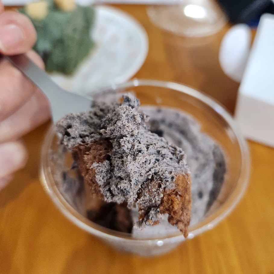 네이버 영수증 이벤트에 참여하면 미니 컵쉬폰을 받을 수 있었다. 초코 쉬폰 사이에 오레오 크림이 켜켜이 쌓여있는데 너무 맛있다. 중간중간 오레오 쿠키가 씹혀 더 맛있다.