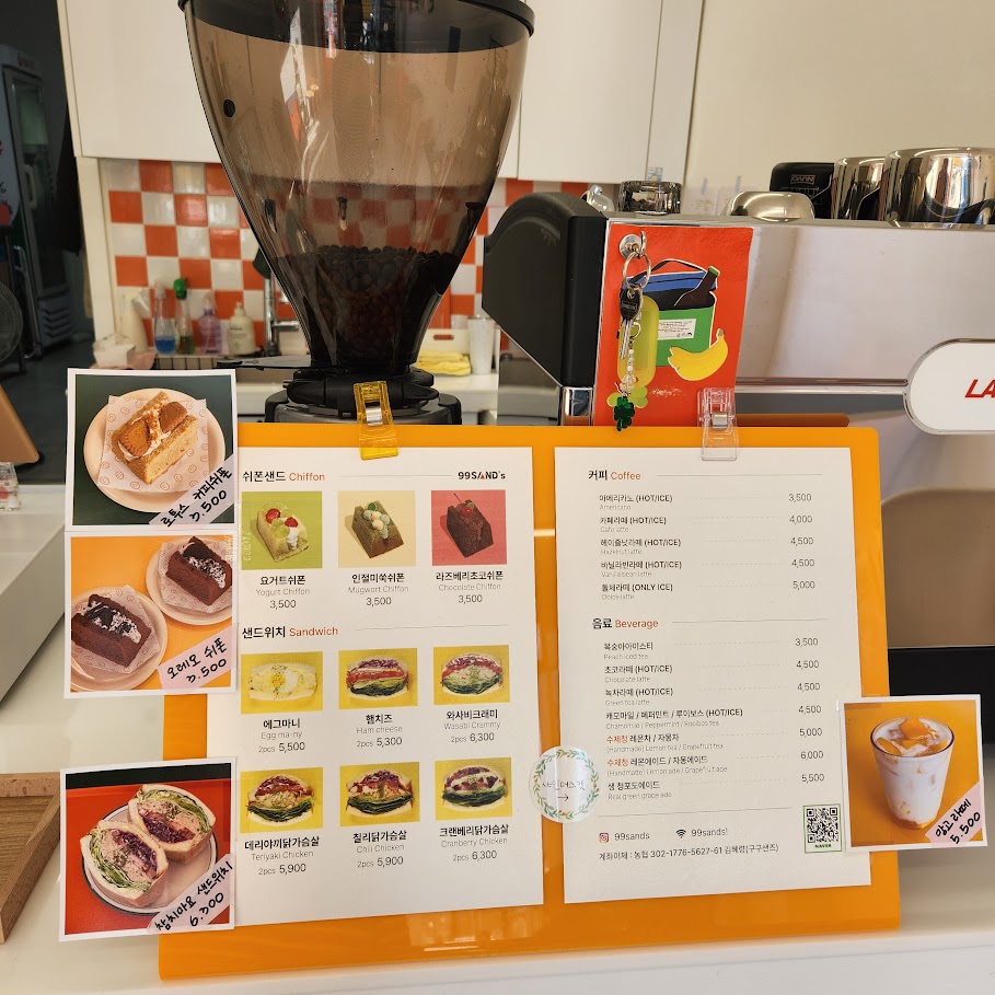 카페인데 음료보다 샌드위치와 쉬폰 케이크만 보인다.