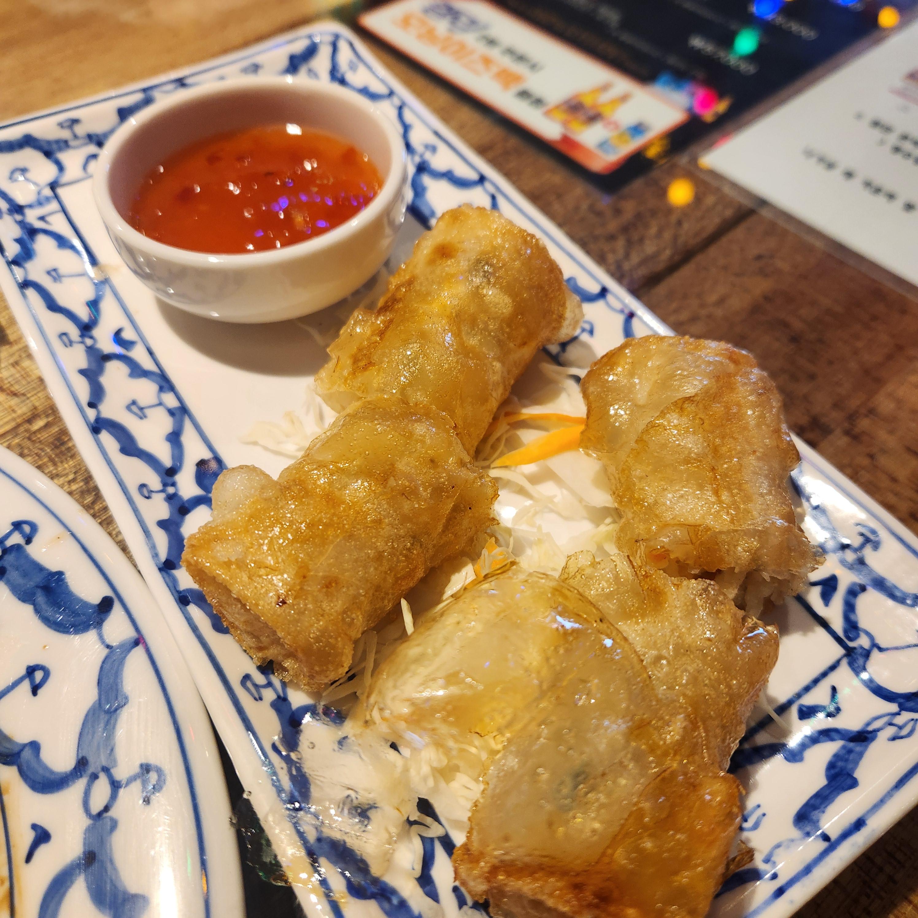 넓쩍한 쌀국수 면을 짭쪼름한 간장에 닭고기와 함께 볶아 요리하는 쌀국수, 팟씨유. 이전에 본적 없었던 메뉴였다. 메뉴판의 설명에 궁금해서 주문했는데. 비주얼은 스프 흡사 짜파게티 같았다. 채소가 많이 들어가있지 않아서 짭짤할 것 같은데 전혀 그렇지 않다. 간장의 감칠맛에 묘하게 손이 간다. 땅콩가루 추가해서 먹으면 더 맛있다고 해서 직원분께 부탁해서 땅콩가루와 함께 먹었는데 엄청 고소하고 감칠맛이 너무 좋다. 간단한 재료들이 들어가서 기대하지 않았는데 매력적이었다. 너무 맛있었다.