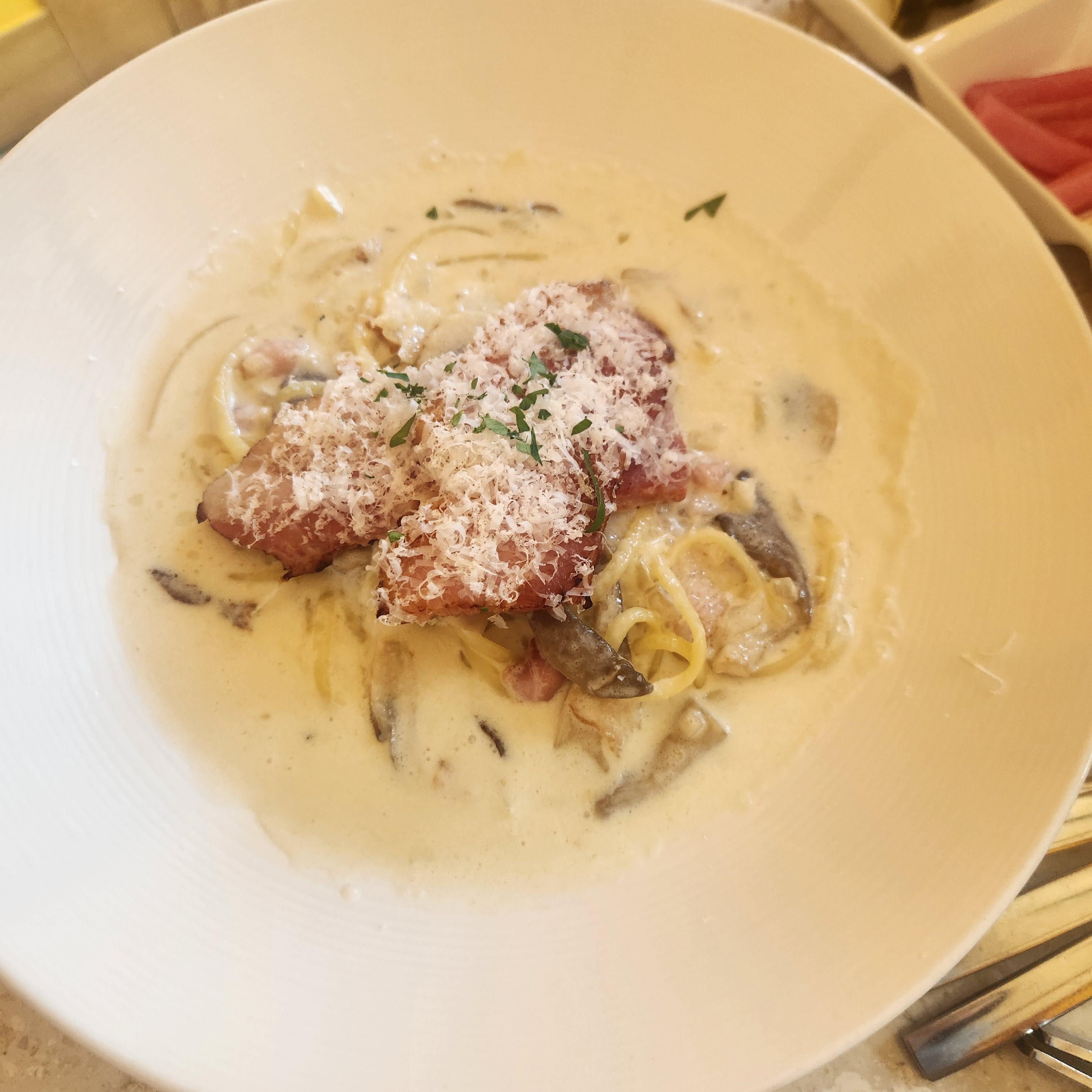꾸덕한 크림 파스타다. 베이컨이 듬뿍 들어가있었고 크림소스도 넉넉했다.