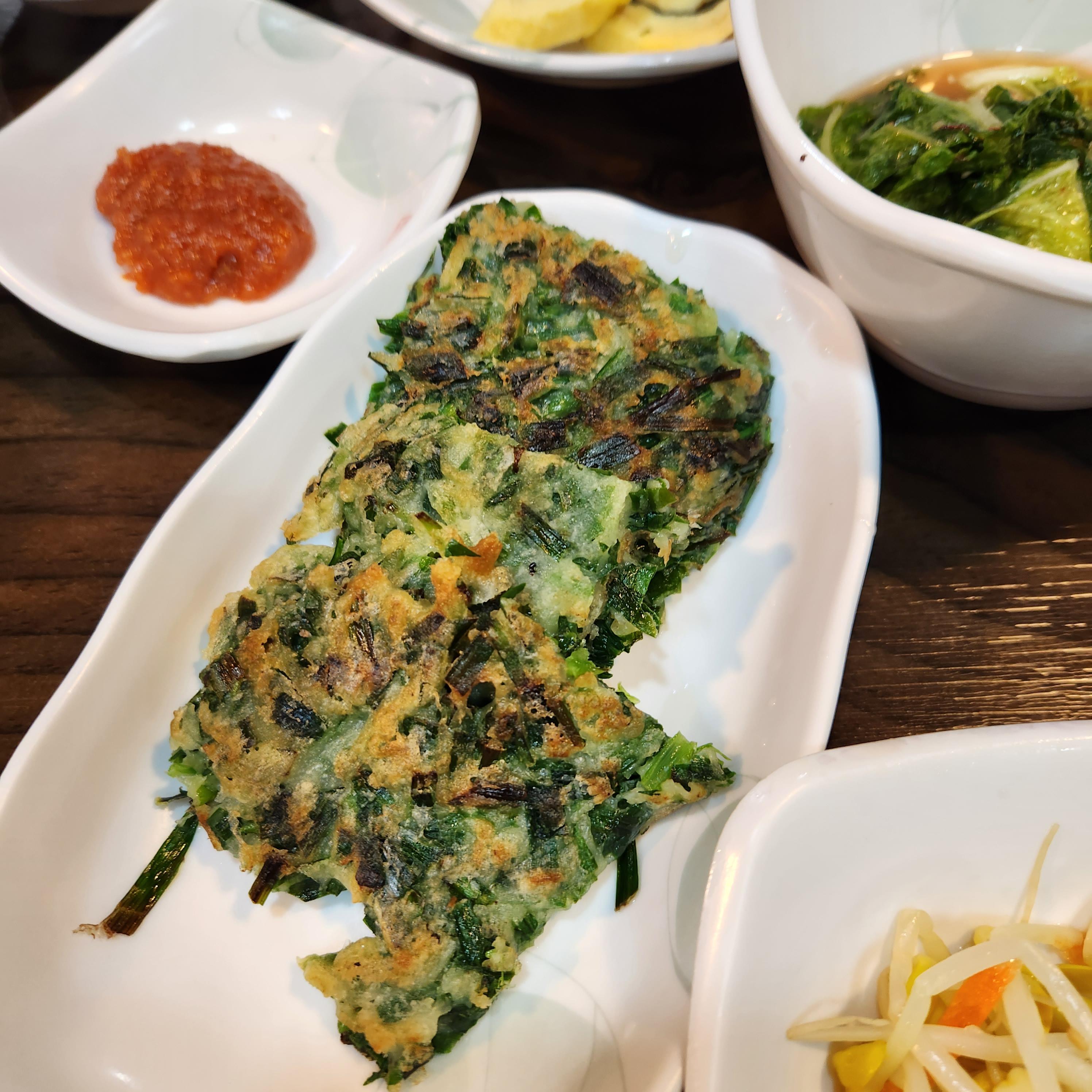 그 중 기본으로 나오는 부추전은 나오기 직전에 구워주셔 바삭하고 따뜻했다.